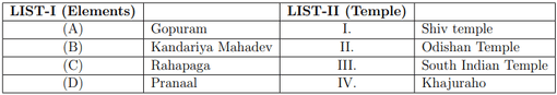 Match the LIST-I with LIST-II.