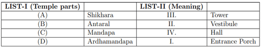 Quick Tip: Temple architecture in India consists of distinct parts: Shikhara (tower), Mandapa (hall), Antaral (vestibule), and Ardhamandapa (porch).