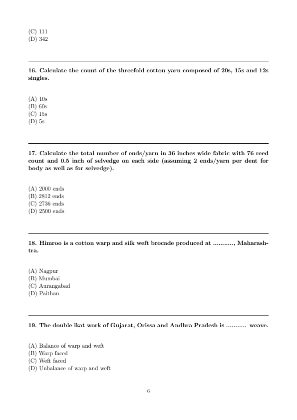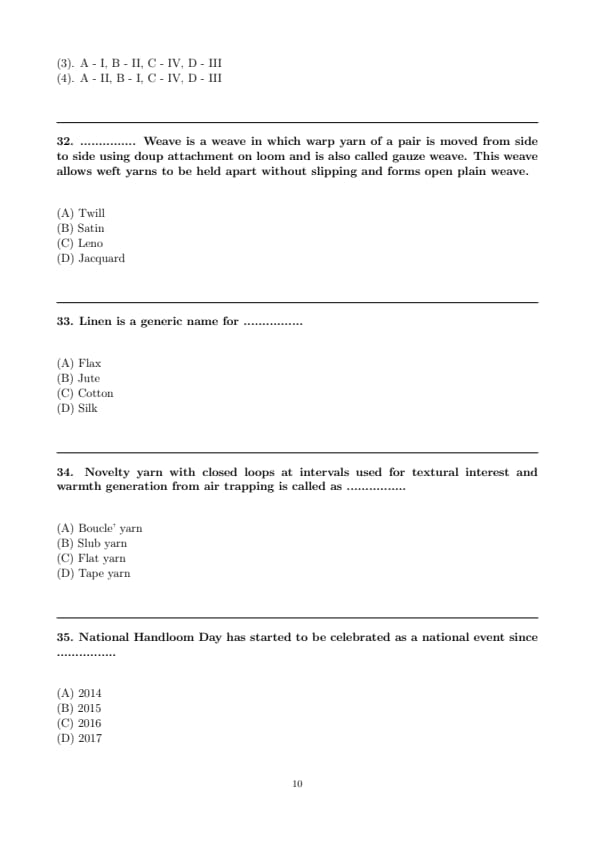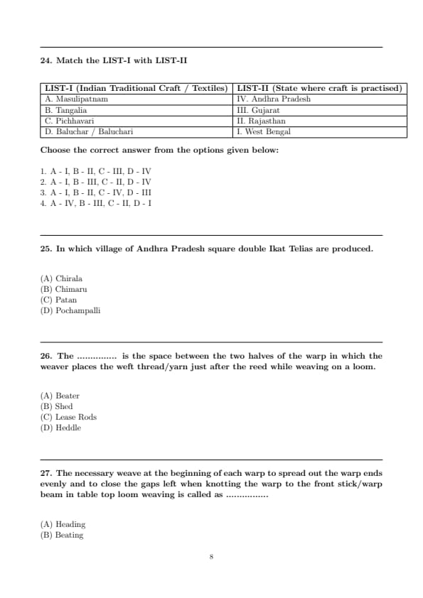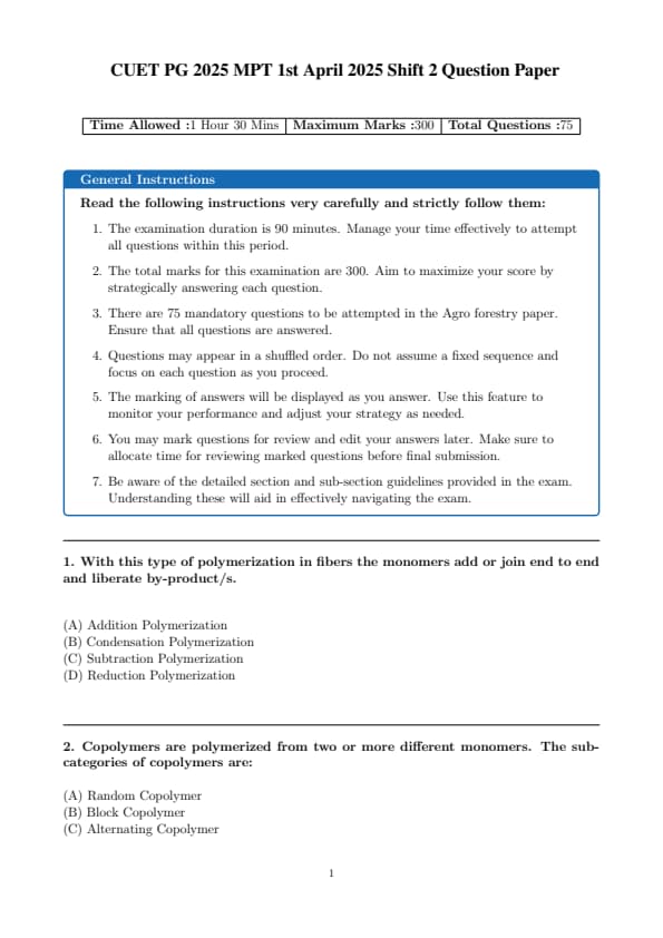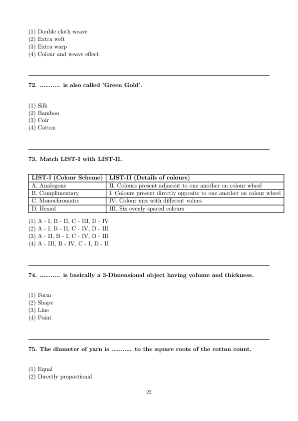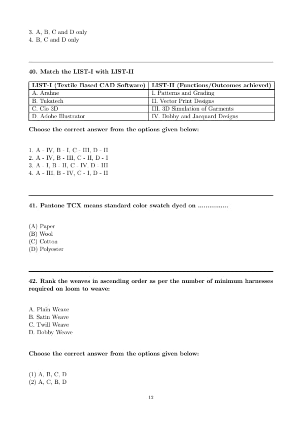 | CUET PG Textile Design Question Paper with Solutions PDF | Download PDF | Check Solutions |