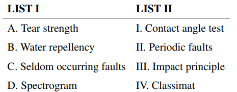 Step 3: Find the corresponding option. The combination A-III, B-I, C-IV, D-II matches option (C). Quick Tip: Follow the material transformation in a spinning mill: