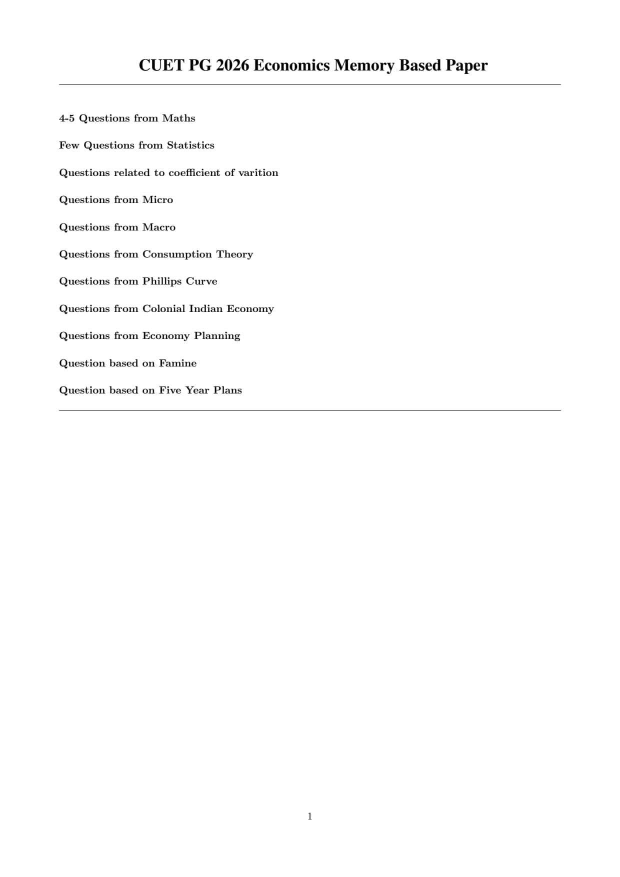 | CUET PG 2026 Economics Question Paper with Answer key | Download PDF | Check Solutions |
