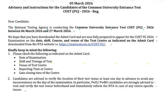 - CUET PG 2026 Exam Dates