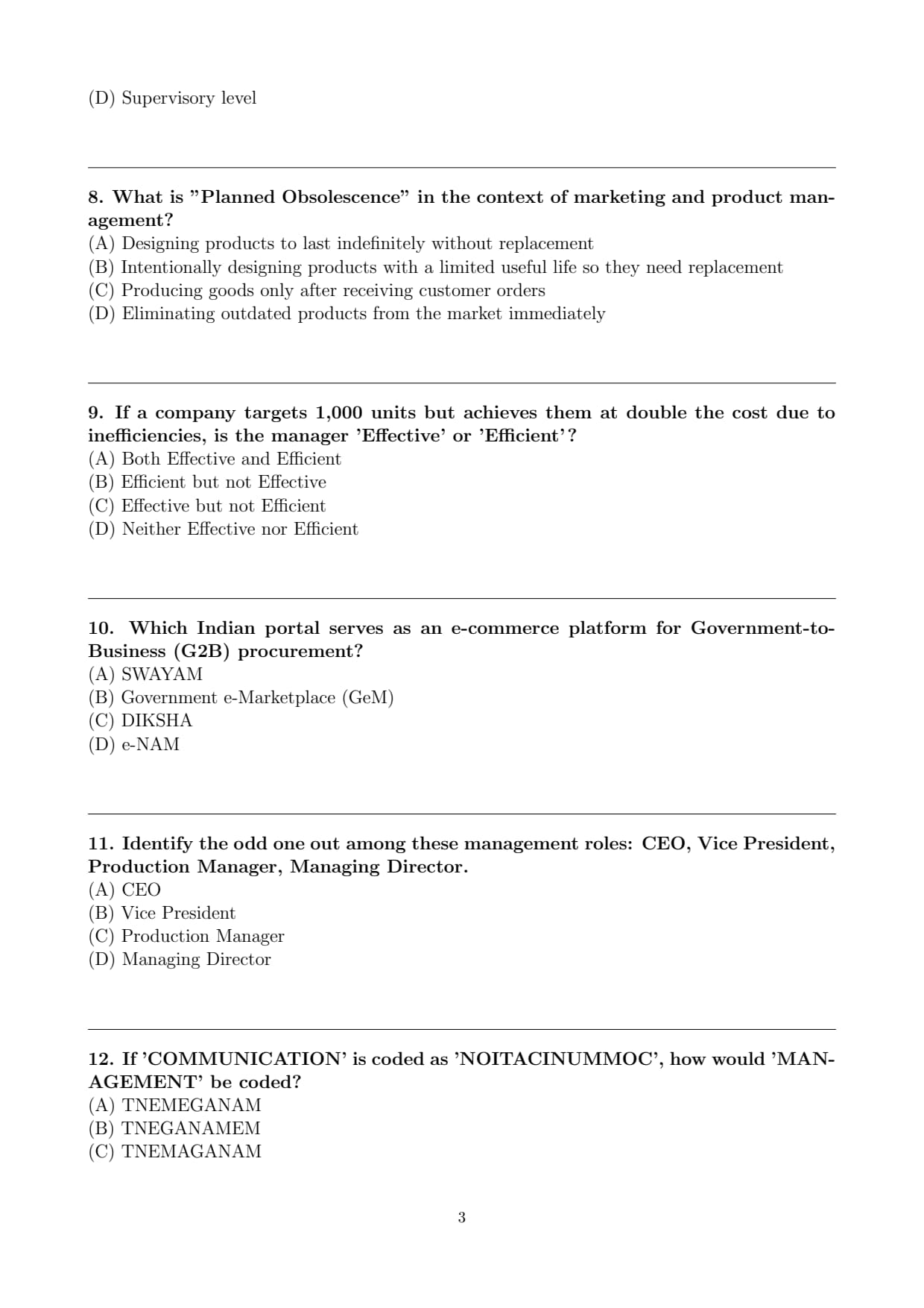 | Organizational Behaviour (Motivation, Leadership, Communication) | 10–12 | Easy–Moderate |