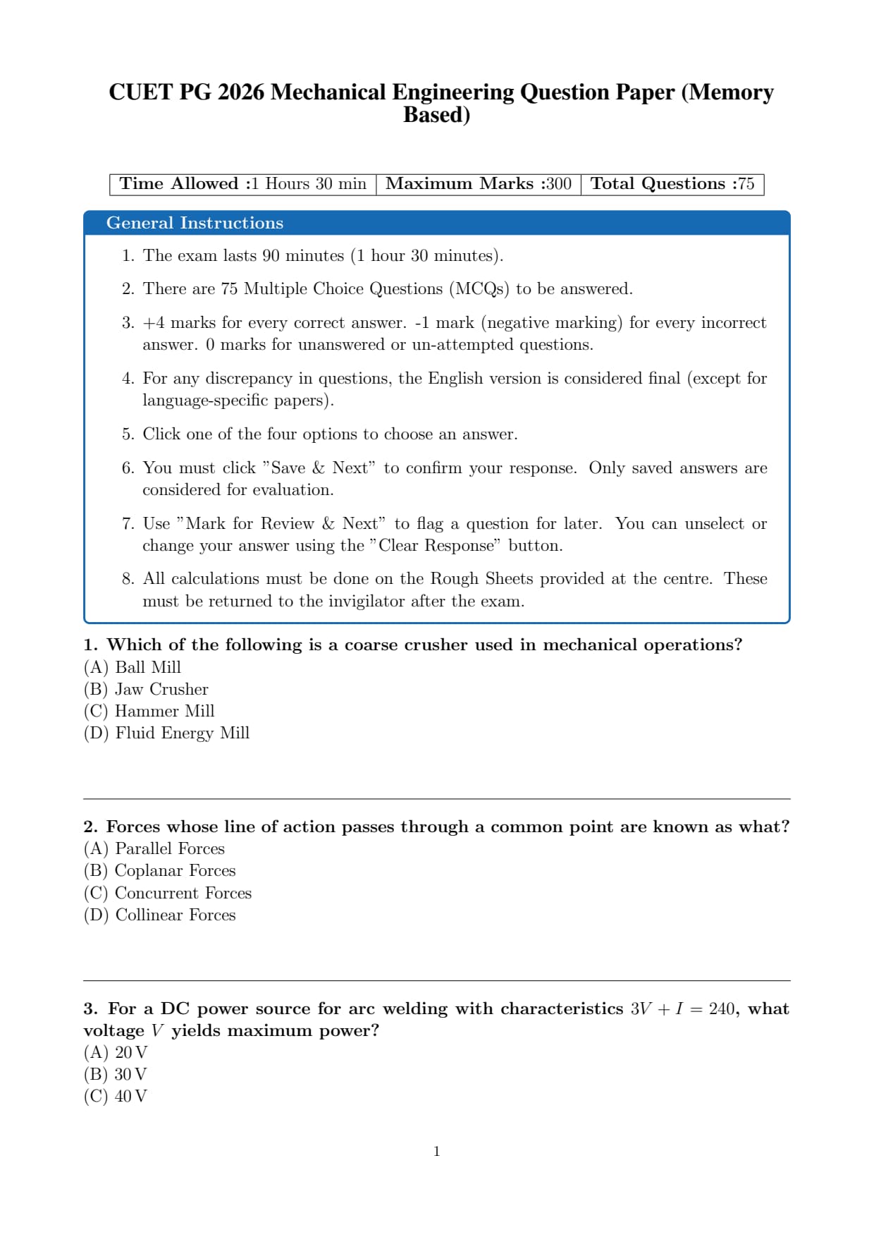 | CUET PG 2026 Mechanical Engineering Question Paper with Answer Key | Download PDF | Check Solutions |