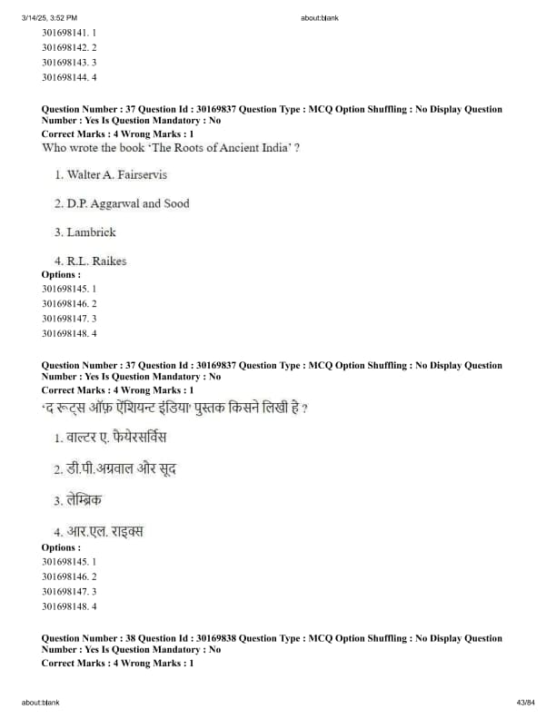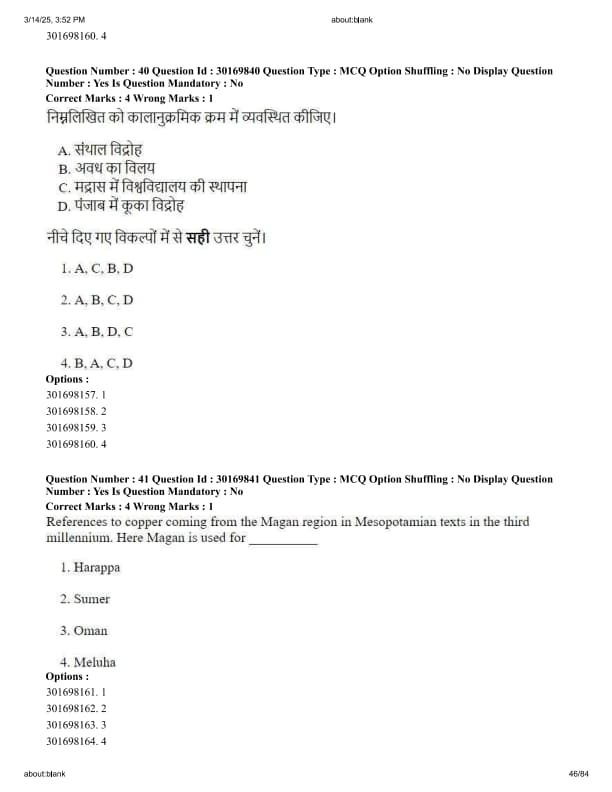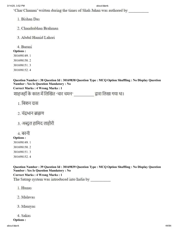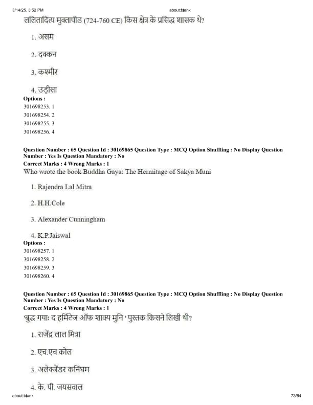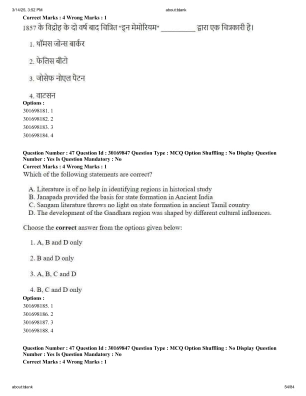 CUET PG Ancient Indian History Question Paper 2025 PDF Download