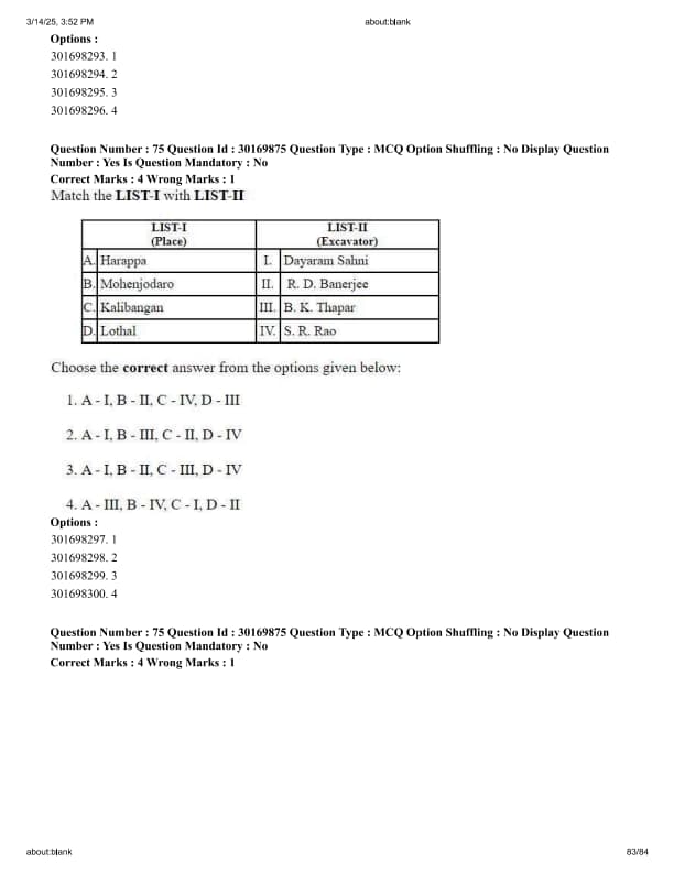 CUET PG Ancient Indian History Question Paper 2025 will be available here for download. NTA conducted CUET PG Ancient Indian History paper 2025 on from March 16 . CUET PG Question Paper 2025 is based on objective-type questions (MCQs). According to latest exam pattern, candidates get 105 minutes to solve 75 MCQs in CUET PG 2025 Ancient Indian History question paper.