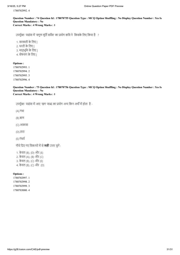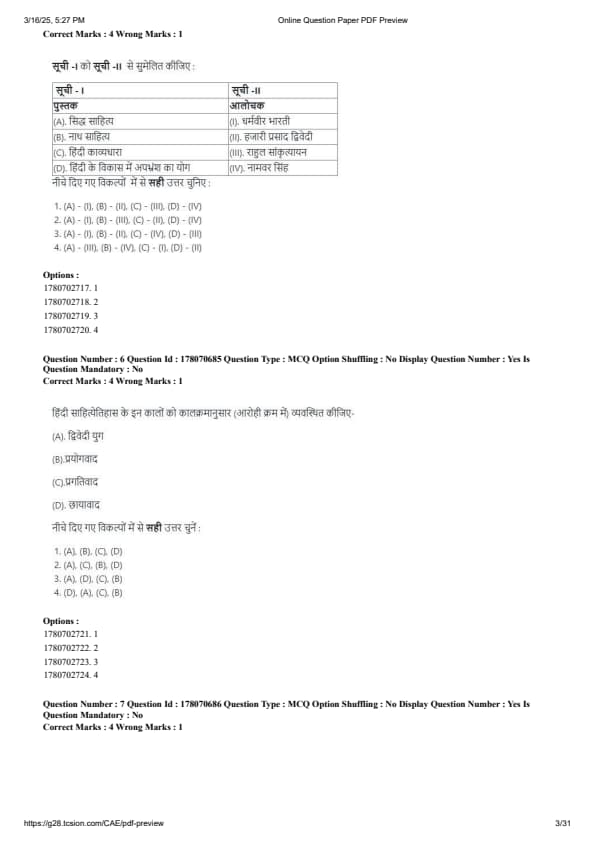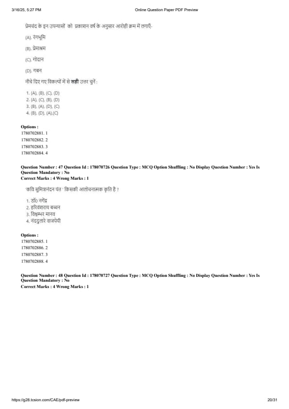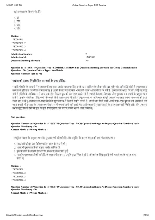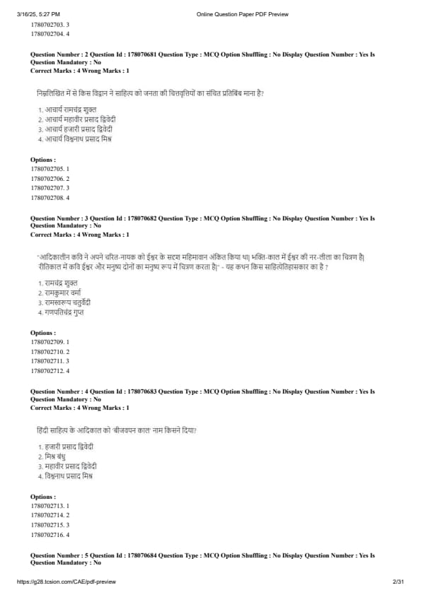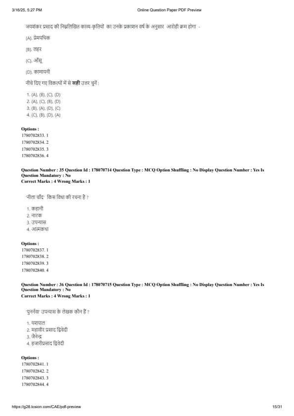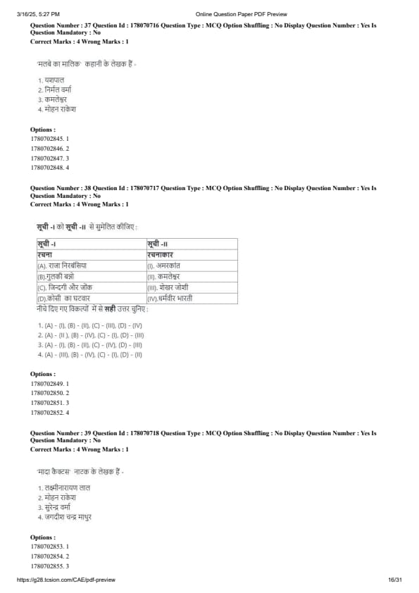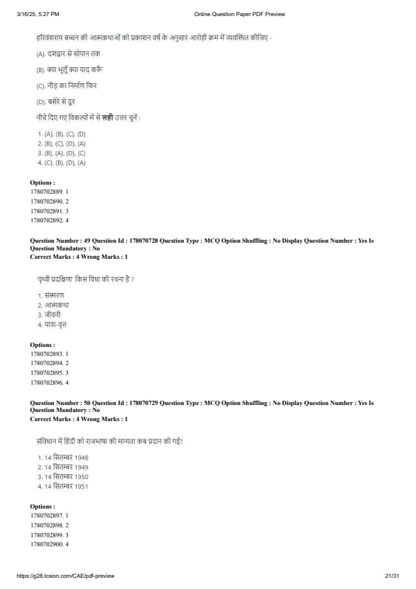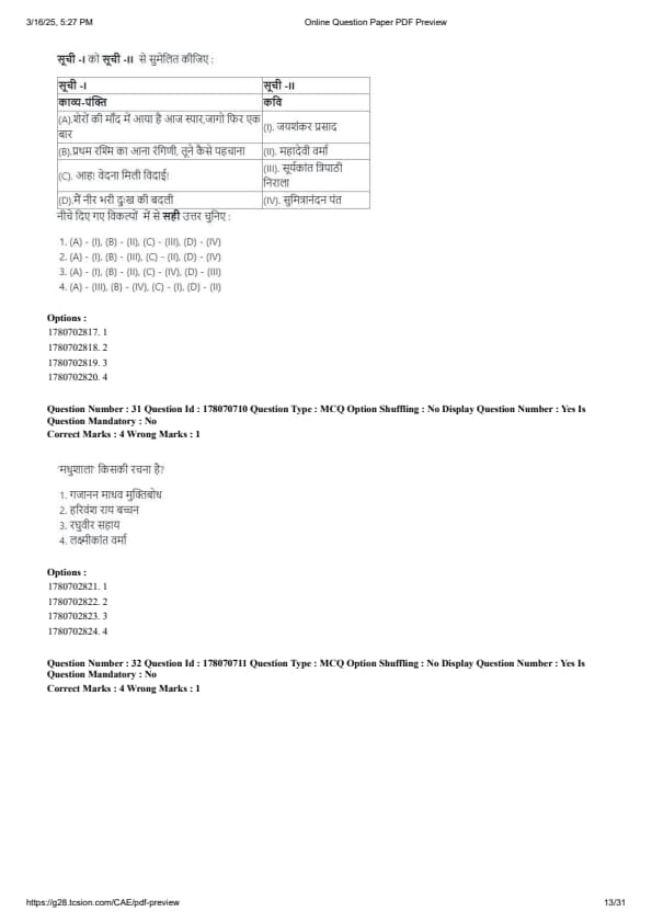 CUET PG Hindi Question Paper 2025 will be available here for download. NTA conducted CUET PG Hindi paper 2025 on from March 16 . CUET PG Question Paper 2025 is based on objective-type questions (MCQs). According to latest exam pattern, candidates get 105 minutes to solve 75 MCQs in CUET PG 2025 Hindi question paper.