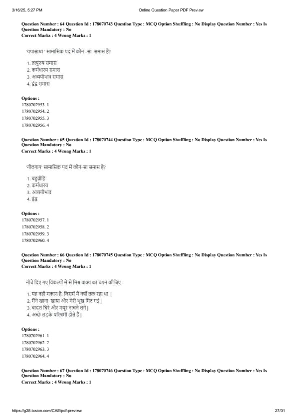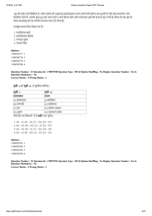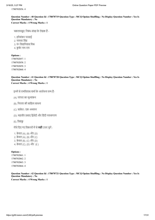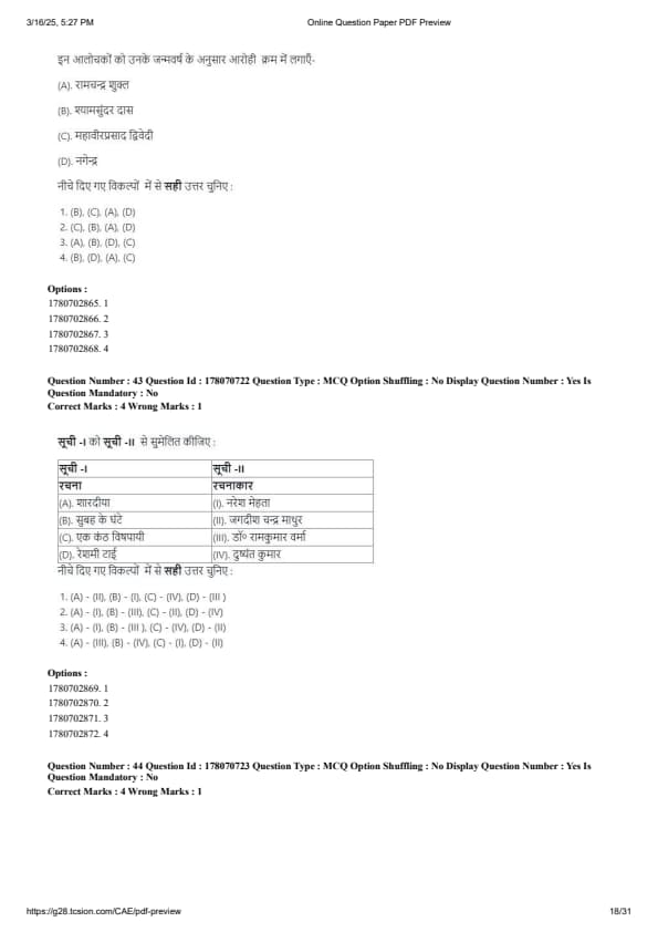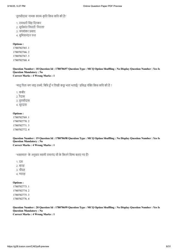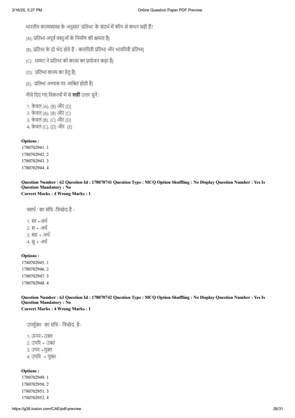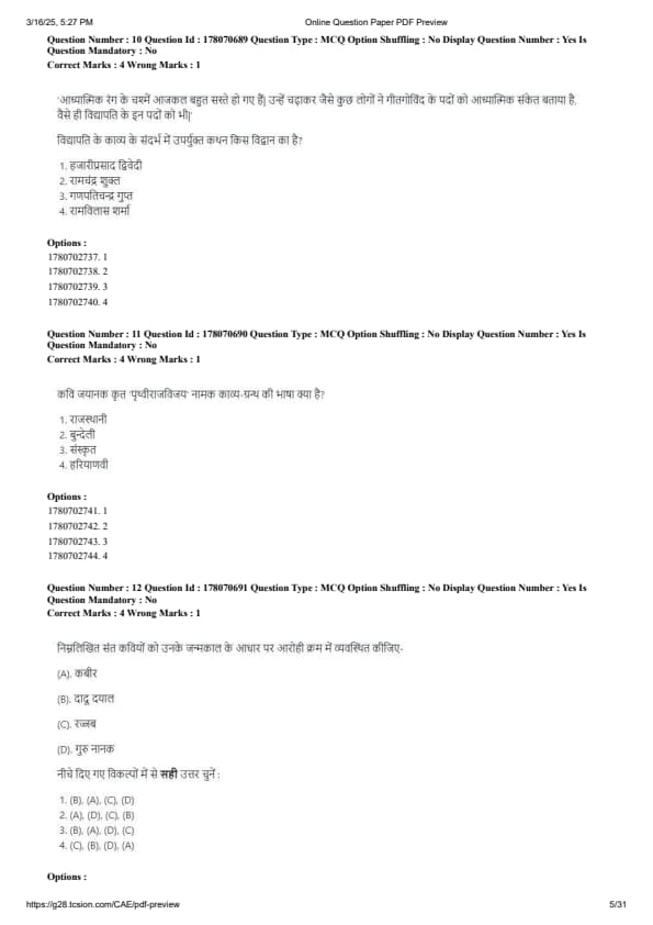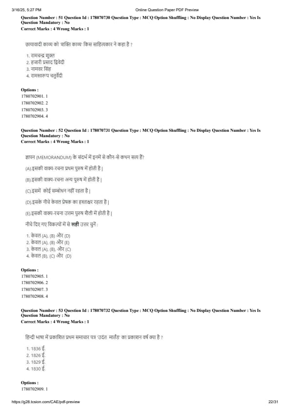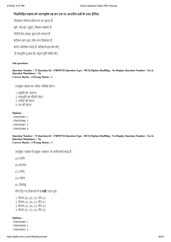 CUET PG Hindi Question Paper 2025 will be available here for download. NTA conducted CUET PG Hindi paper 2025 on from March 16 . CUET PG Question Paper 2025 is based on objective-type questions (MCQs). According to latest exam pattern, candidates get 105 minutes to solve 75 MCQs in CUET PG 2025 Hindi question paper.