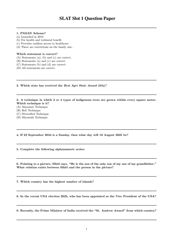 | SLAT 2025 Question Paper with Solutions PDF | Download PDF | Check Solutions |