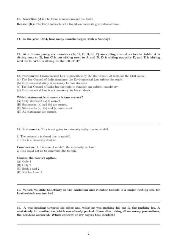Step 5: Statement (d) is incorrect as Environmental Law is mandatory. Quick Tip: For statement-based questions: Focus strictly on what is stated, Avoid assumptions beyond the given statement, Eliminate options that contradict mandatory provisions.