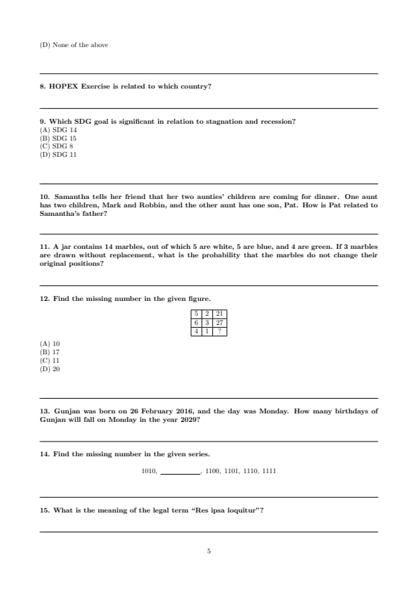 Step 4: Therefore, SDG 8 is most significant in addressing stagnation and recession. Quick Tip: For SDG-based questions: SDG 8 relates to economic growth and employment, SDG 14 and 15 focus on life below water and life on land, SDG 11 deals with sustainable cities and communities.