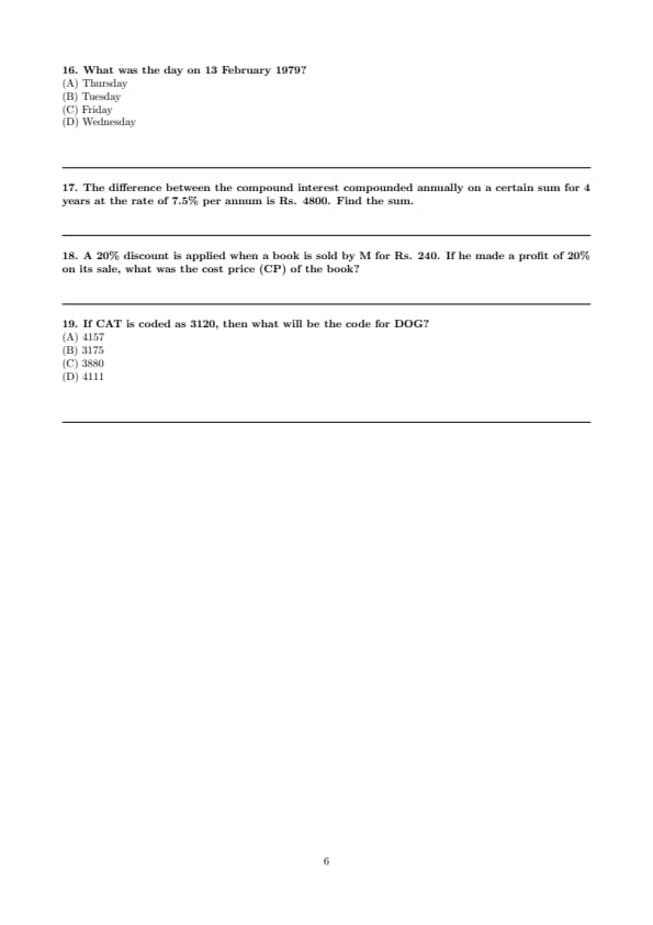 Step 4: Hence, 13 February 1979 was a Wednesday. Quick Tip: For day–date problems: First check whether the year is a leap year, Use the odd-days method systematically, Always verify month-wise day counts.