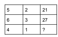 Alternatively, observe the actual consistent pattern: \[ (5 \times 2) + 11 = 21 \] \[ (6 \times 3) + 9 = 27 \]