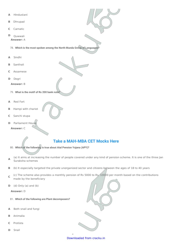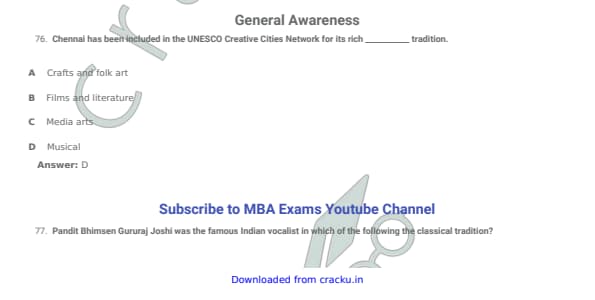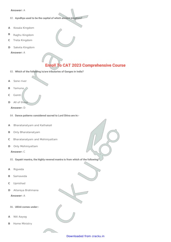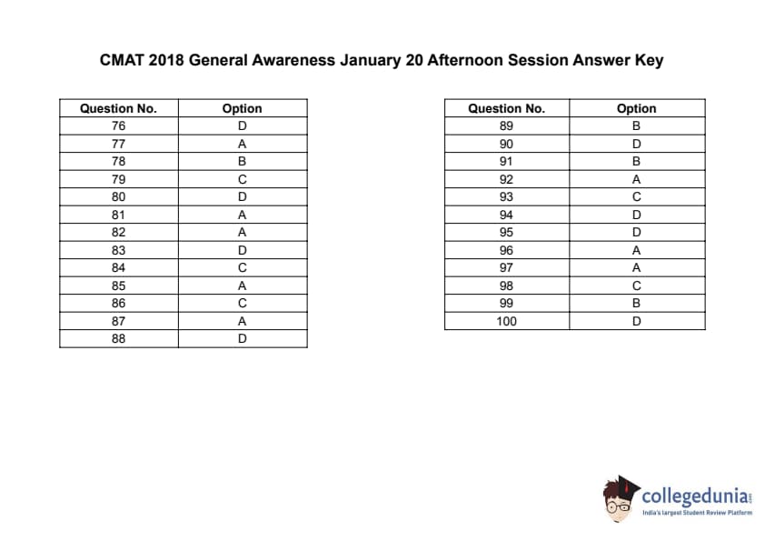 | CMAT 2018 General Awareness Question Paper with Solutions PDF | Download PDF | Check Solutions |