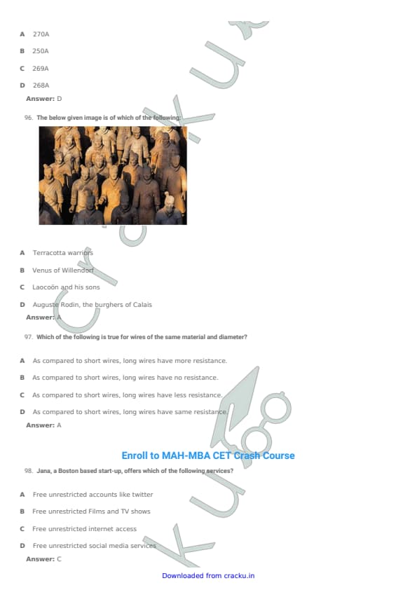 CMAT 2018 General Awareness Question paper with answer key pdf conducted on January 20 in Afternoon Session 2:30 PM to 5:30 PM is available for download. The exam was successfully organized by All India Council for Technical Education (AICTE). The question paper comprised a total of 25 questions. (PDF Source: cracku.in)