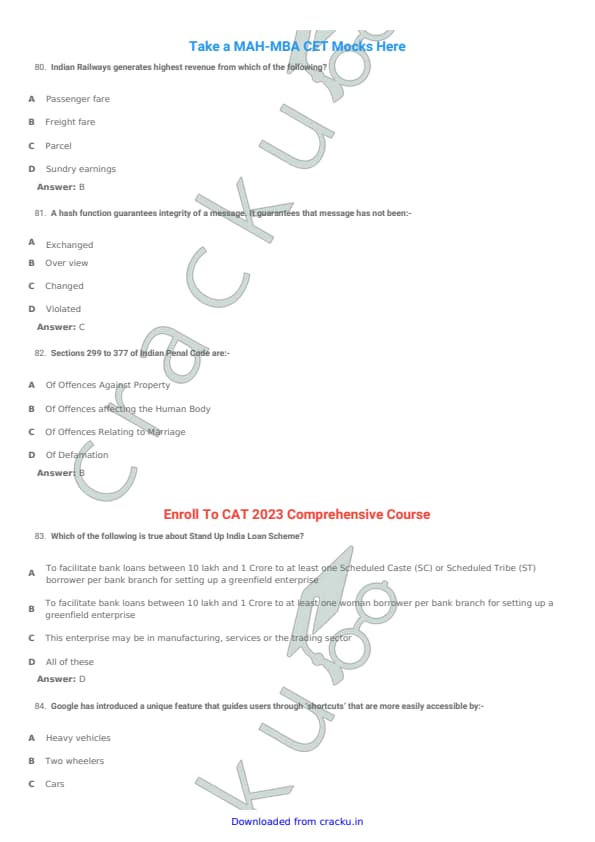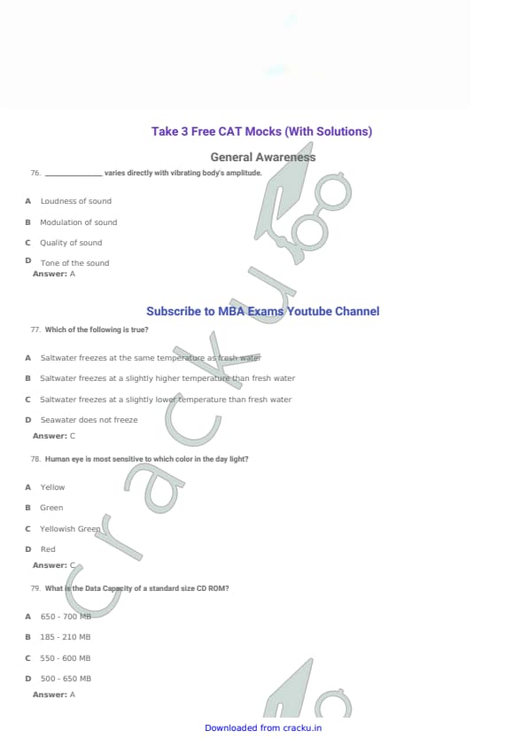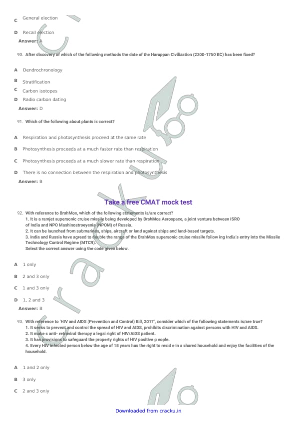 | CMAT 2018 General Awareness Question Paper with Solutions PDF | Download PDF | Check Solutions |