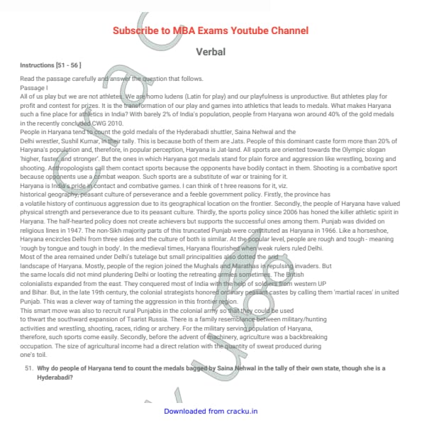 CMAT 2018 Language Comprehension Question Paper with Answer Key PDFs Afternoon Session