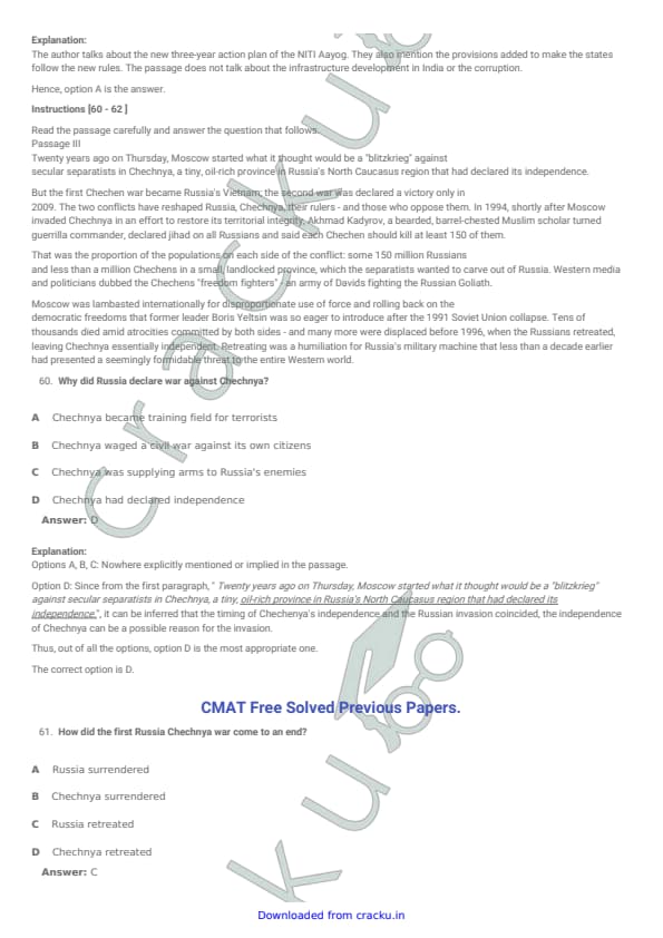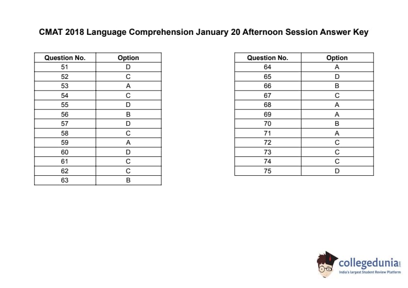 | CMAT 2018 Language Comprehension Question Paper with Solutions PDF | Download PDF | Check Solutions |