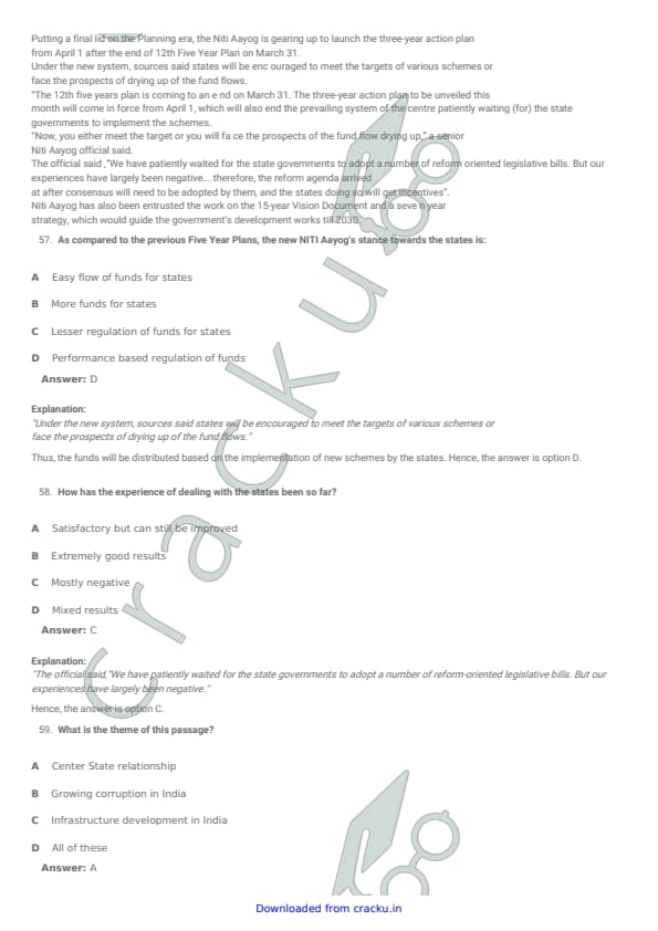 Quick Tip: When a question asks “true about policy”, locate the exact policy statement in the passage and match the closest paraphrased option.