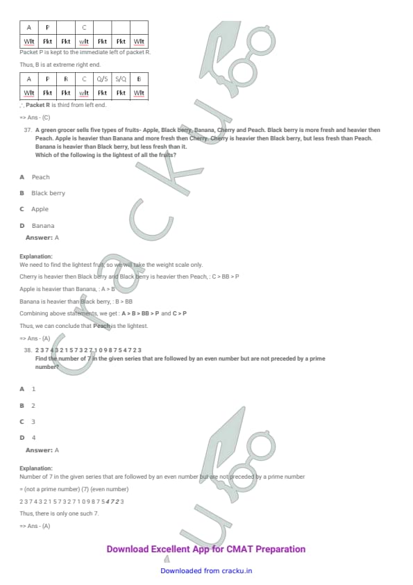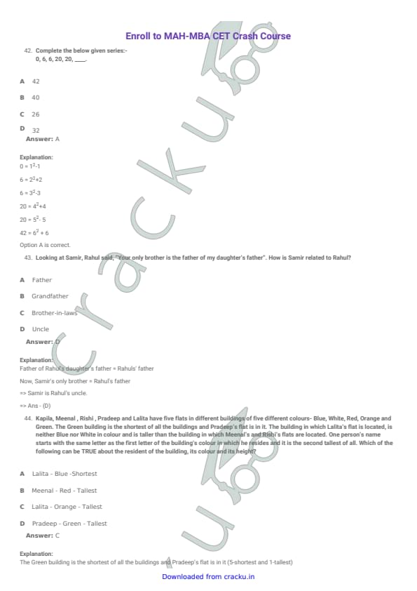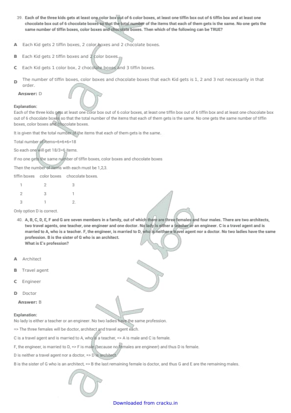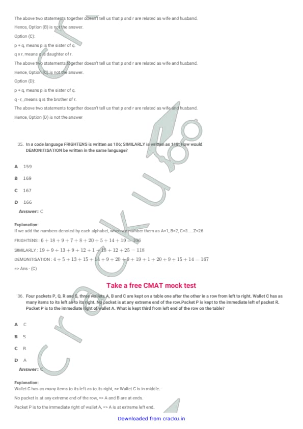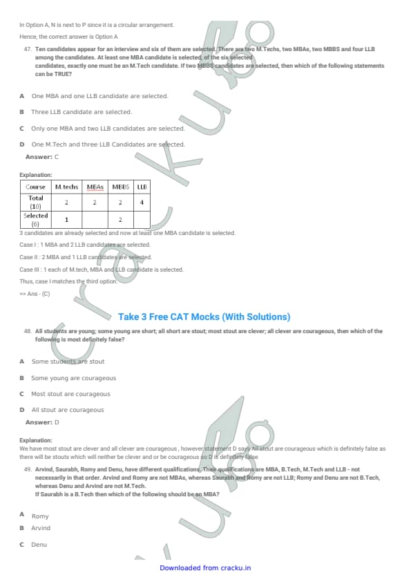| CMAT 2018 Logical Reasoning Question Paper with Solutions PDF | Download PDF | Check Solutions |