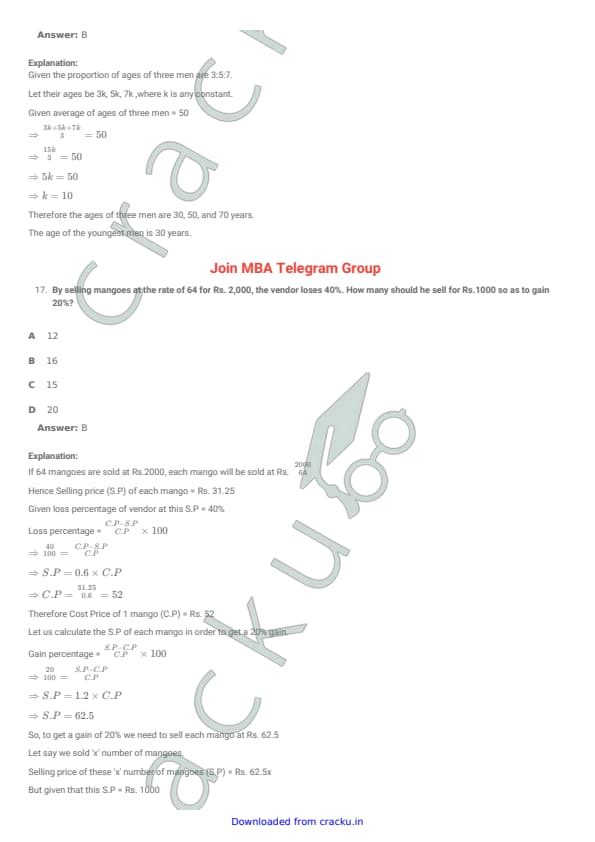 Quick Tip: If selling at cost price but gaining due to underweight, assume CP of 1 kg and use gain formula: \(SP = 1.2 \times CP\) to find actual weight.