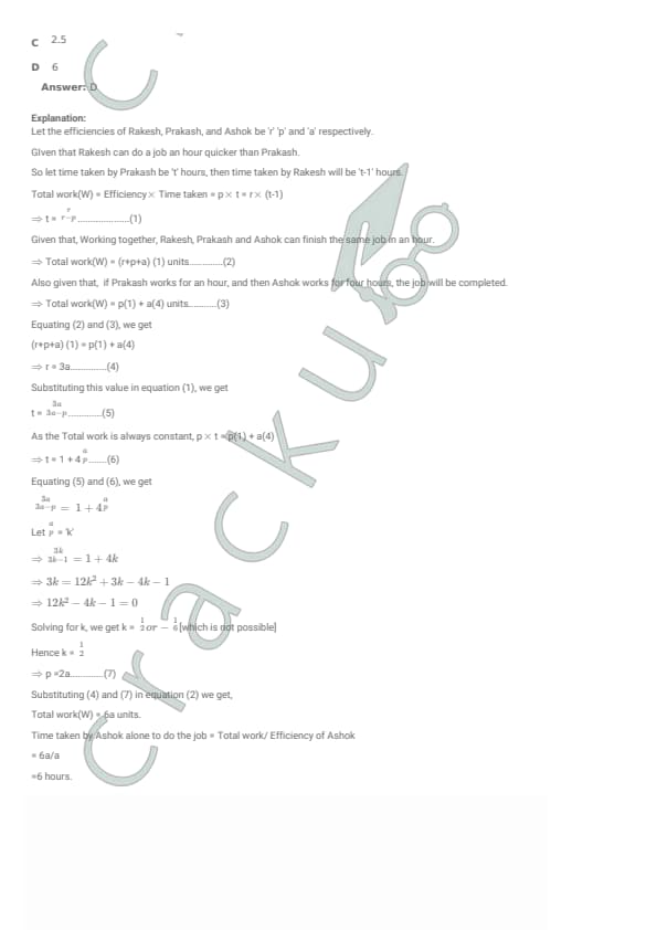 Quick Tip: Convert time into efficiency: If a person takes \(t\) hours, efficiency = \(\frac{1}{t}\). Use equations based on total work = 1 unit.