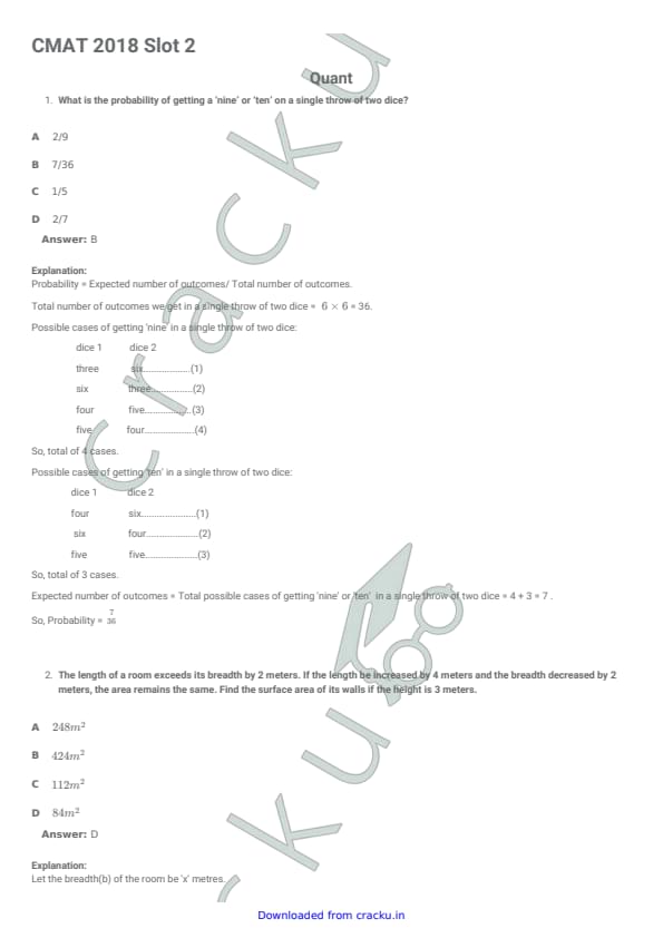 | CMAT 2018 Quantitative Techniques and Data Interpretation Question Paper with Solutions PDF | Download PDF | Check Solutions |