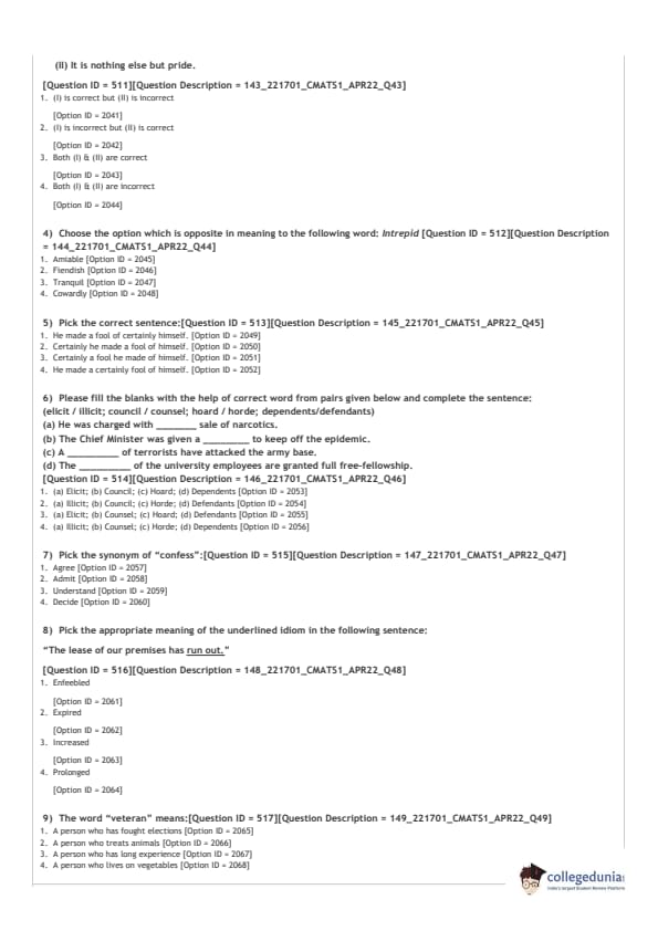 CMAT Previous Year Question Paper with Answer Key PDFs