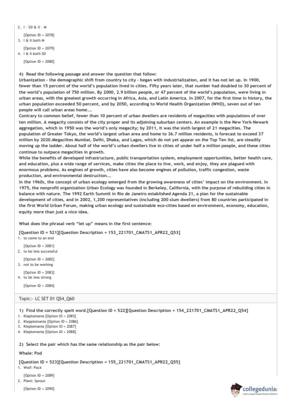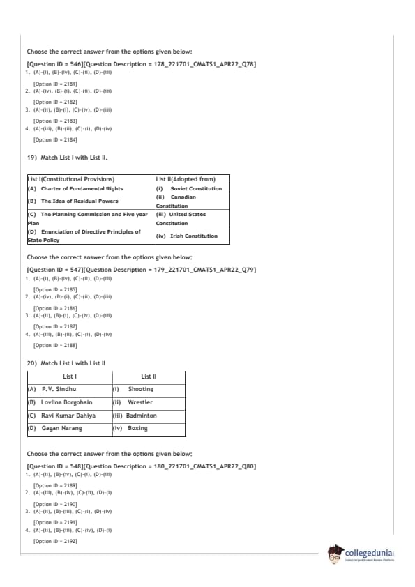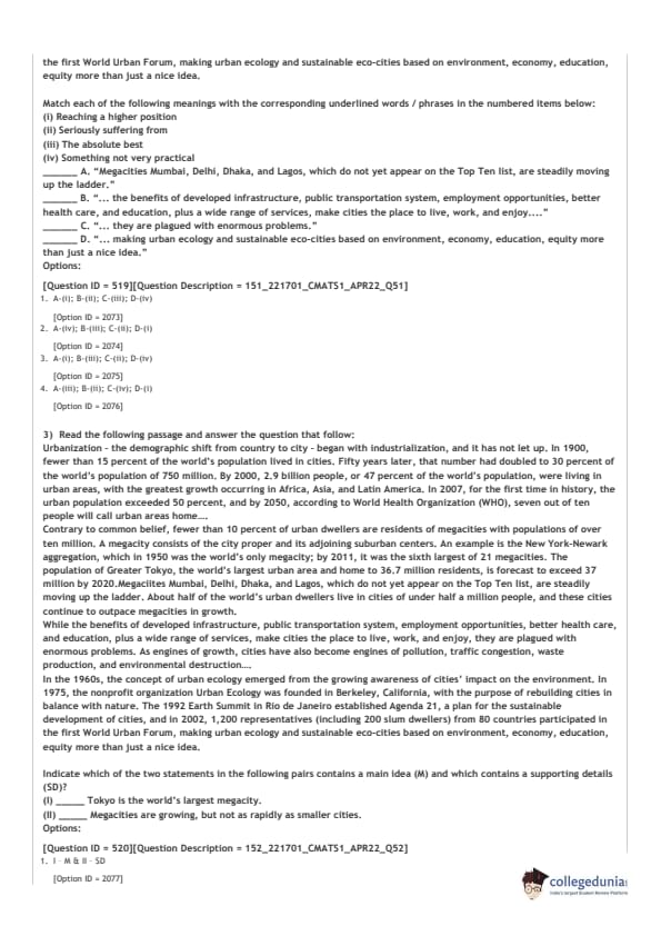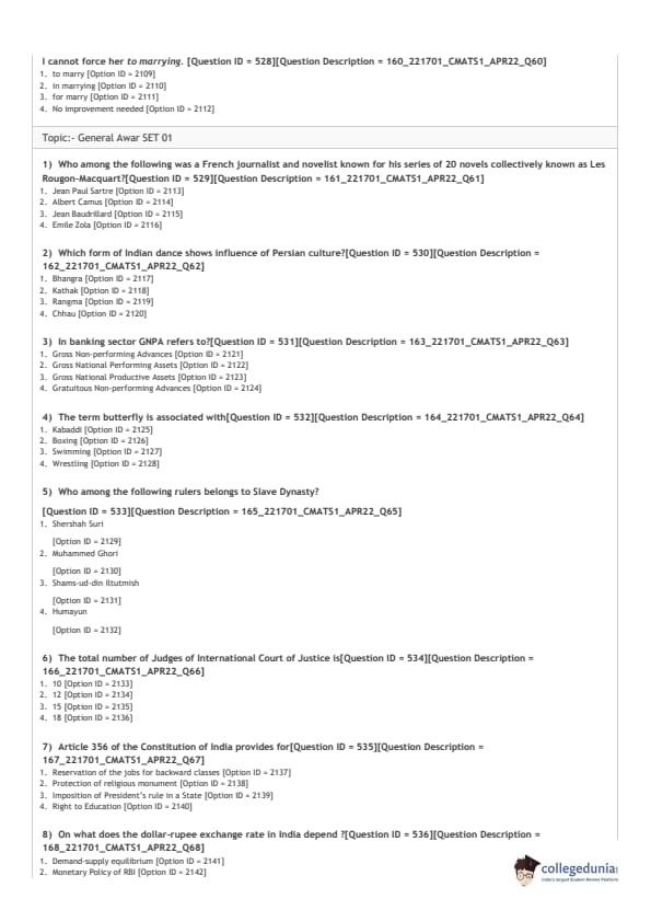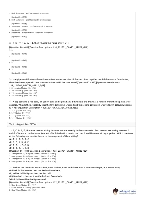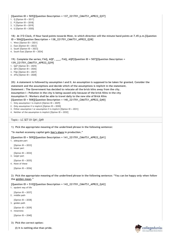 | CMAT 2021 Question Papers | CMAT 2020 Question Papers | CMAT 2019 Question Papers |