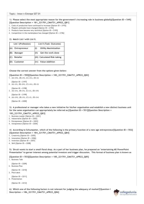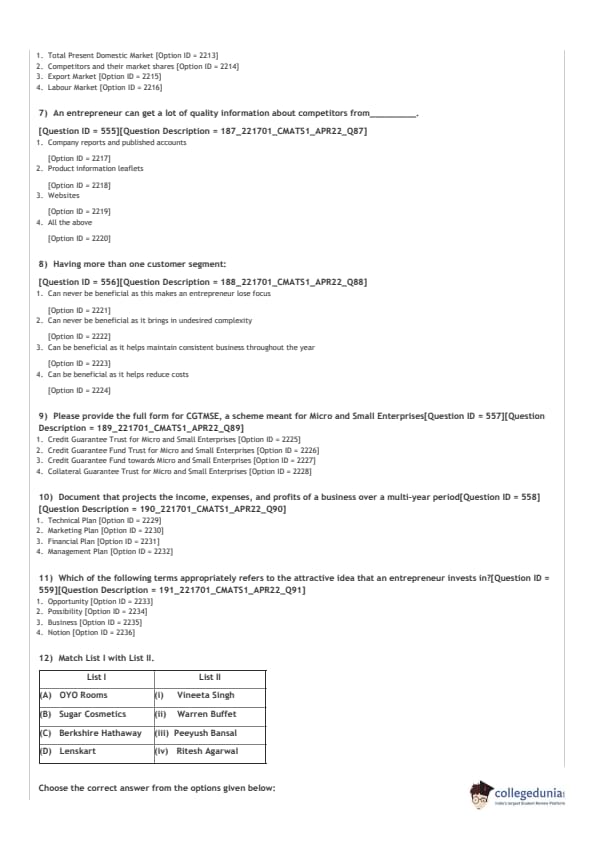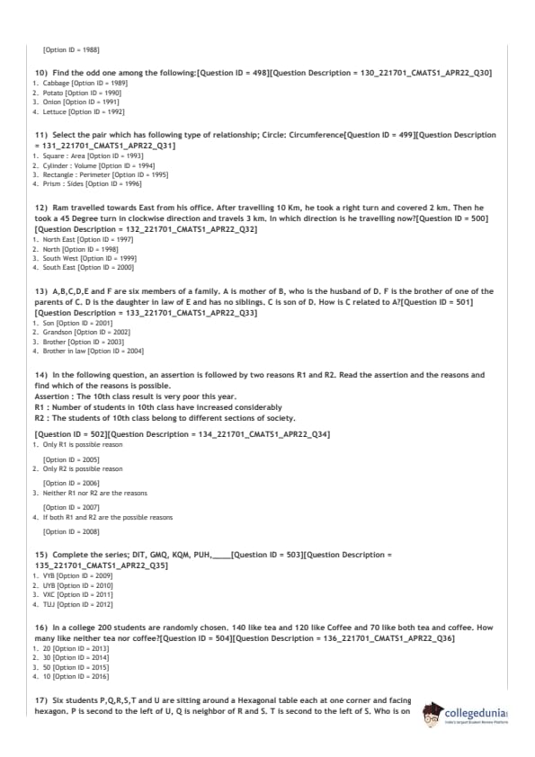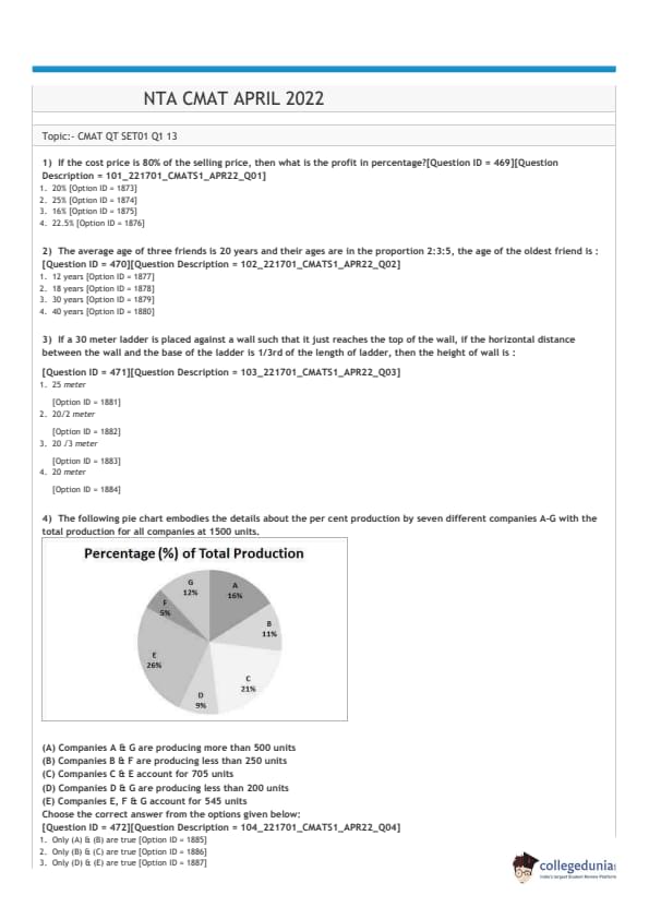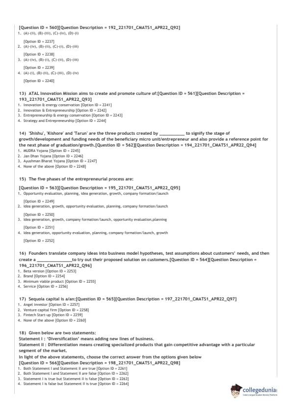 | CMAT 2018 Question Papers | CMAT 2017 Question Papers | CMAT Practice Papers |
