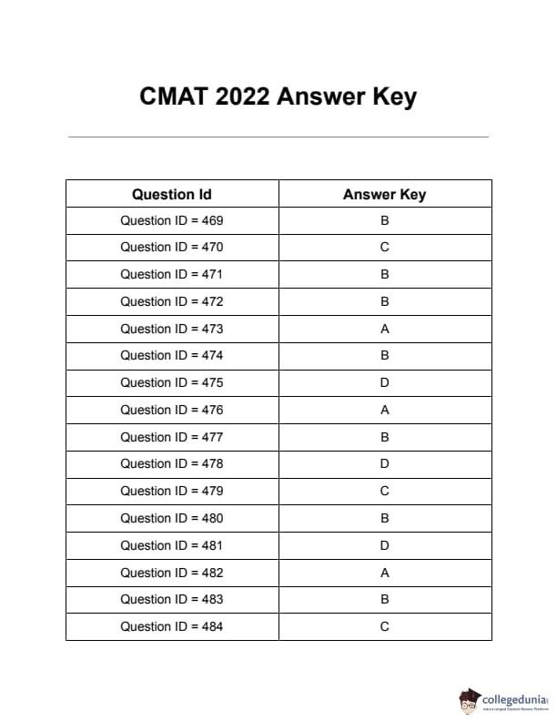 | CMAT 2022 Question Paper PDF | CMAT 2022 Answer Key PDF | CMAT 2022 Solutions PDF |