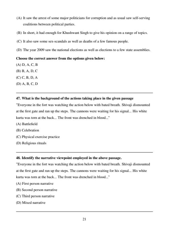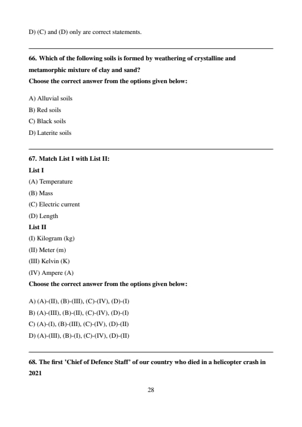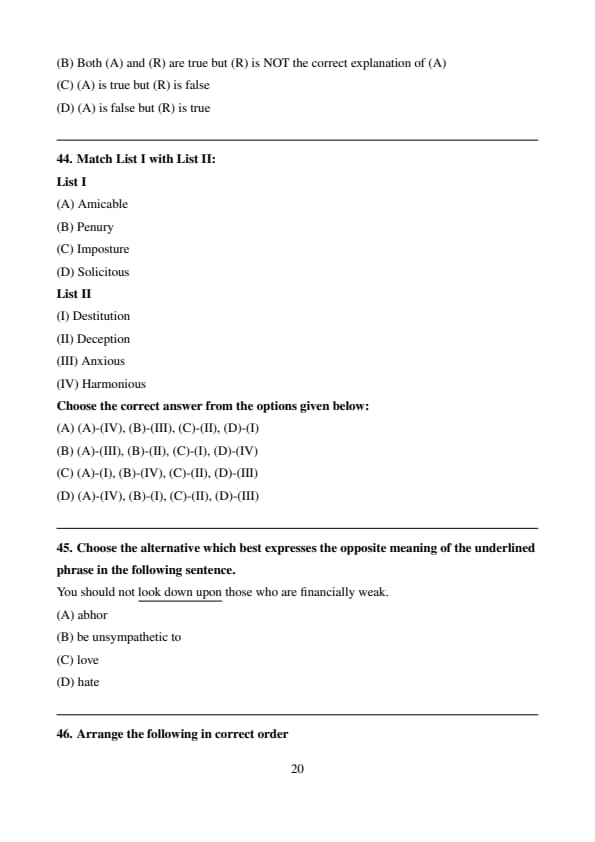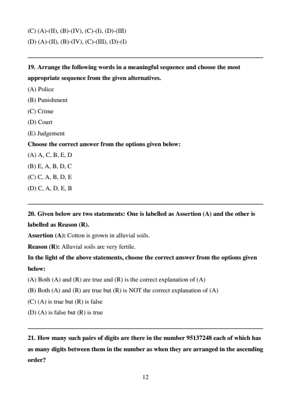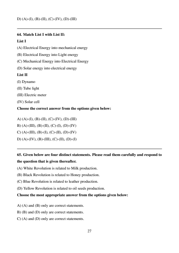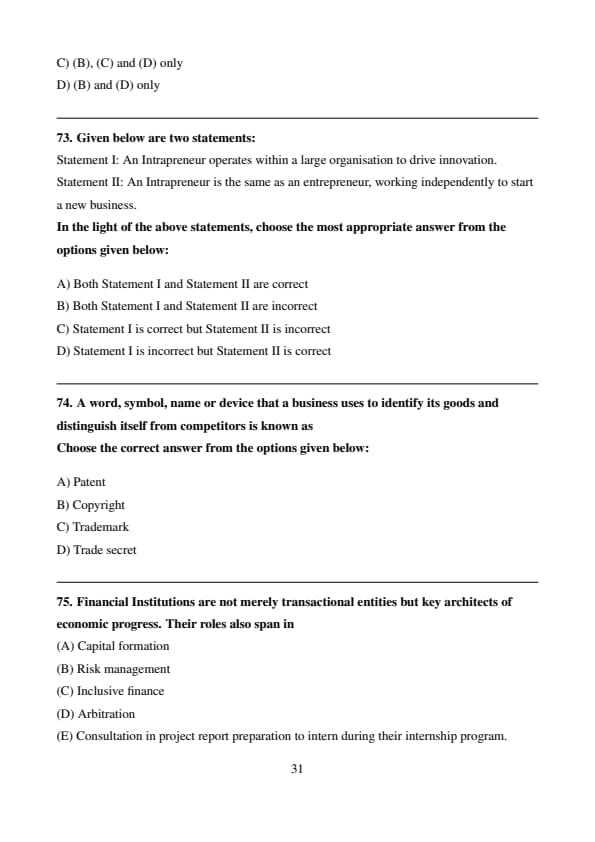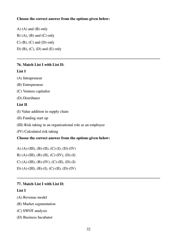 - (D) Break even point → (I): The point at which total revenue equals total cost—no profit, no loss. Quick Tip: Understanding these core business concepts helps entrepreneurs make informed strategic and financial decisions.