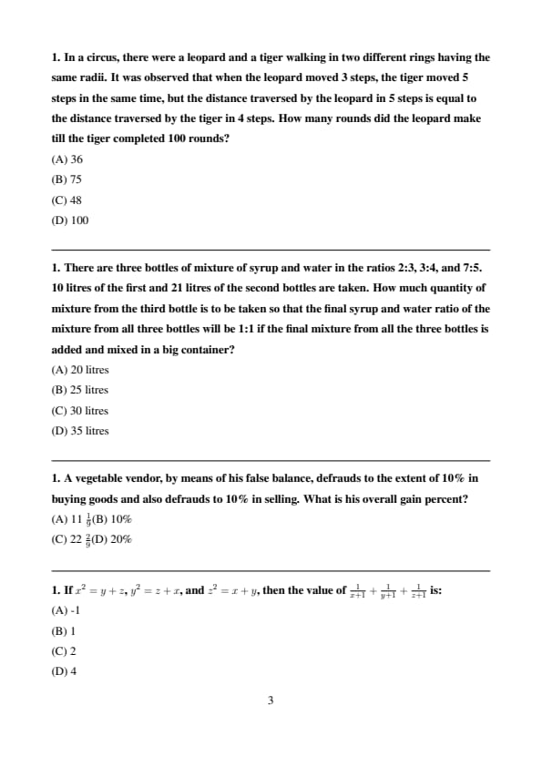 Thus, the number of rounds made by the leopard is \( 48 \). Quick Tip: When solving such problems, first express the given relationships in terms of the distance and steps per round, and then use the ratios to find the final answer.