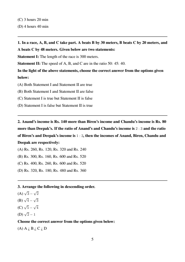 Thus, the correct order is \( A > B > D > C \). Quick Tip: When comparing large exponential expressions, focus on the magnitude of the exponents to determine the relative sizes.