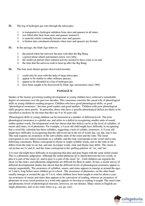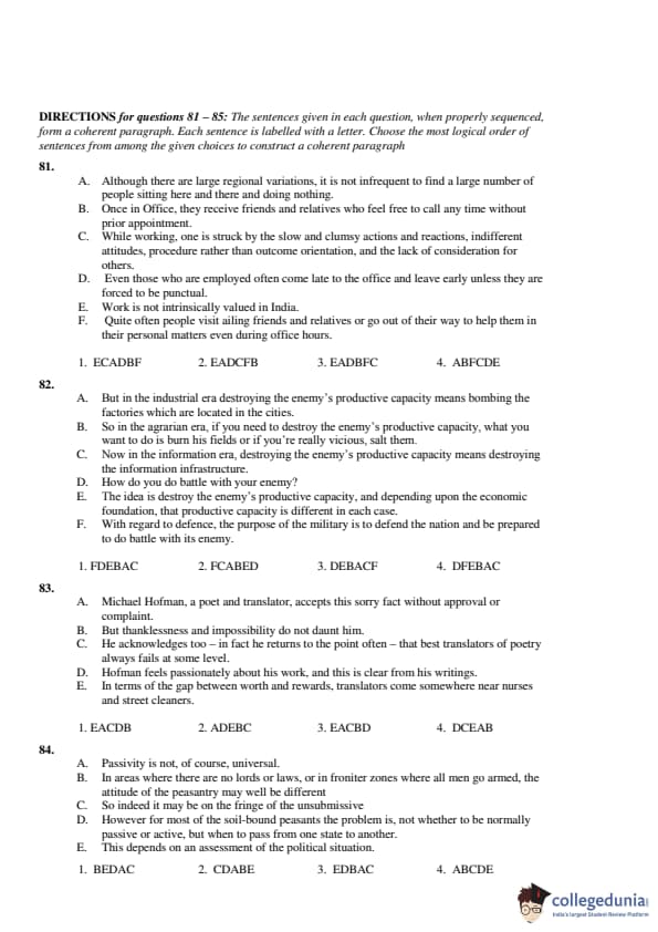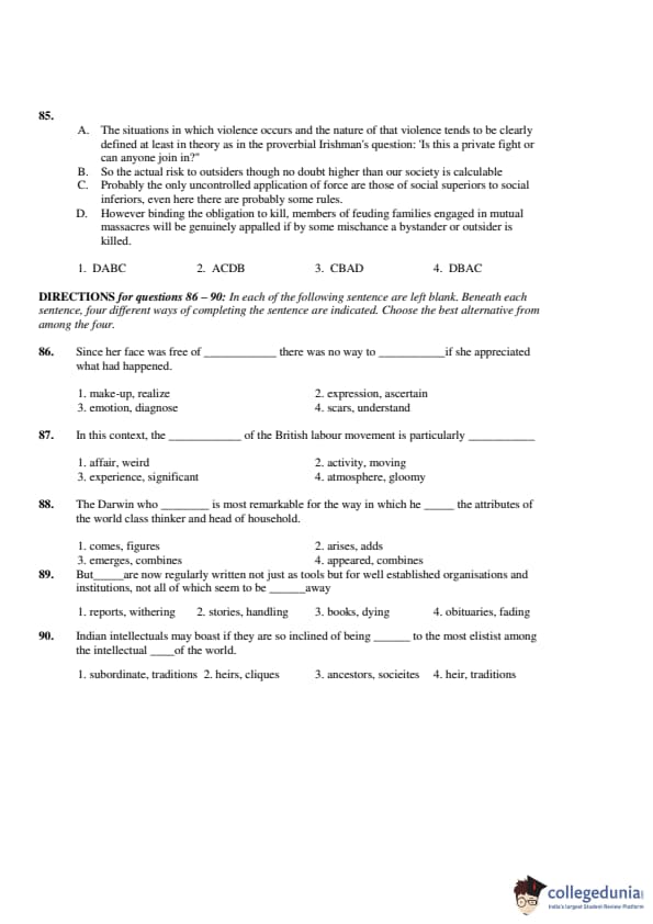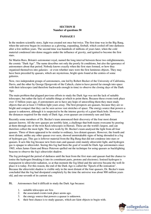 Section 2 of CAT 2001 question paper was VARC (Verbal Ability and Reading Comprehension). A total of 50 questions appeared in this section. There were a total of 30 questions based on reading comprehension. Below-mentioned are the details of the listed passages in the question paper: