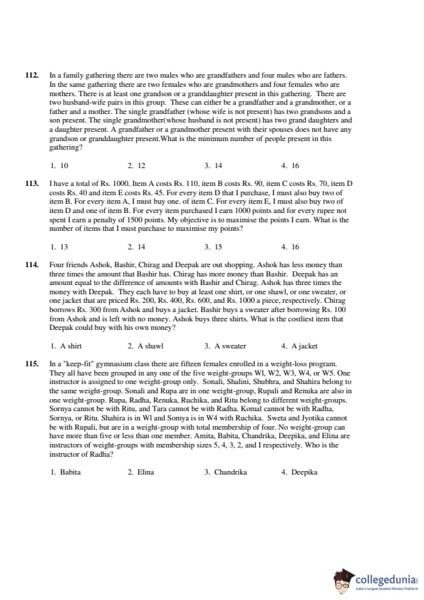 money with Deepak. They each have to buy at least one shirt, or one shawl, or one sweater, or one