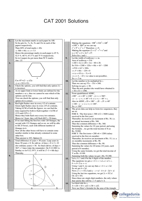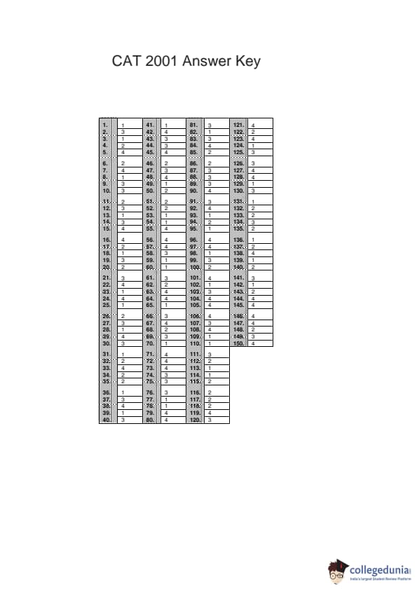 | CAT 2001 Question Paper with Answer Key | Download PDF | Check Solutions |