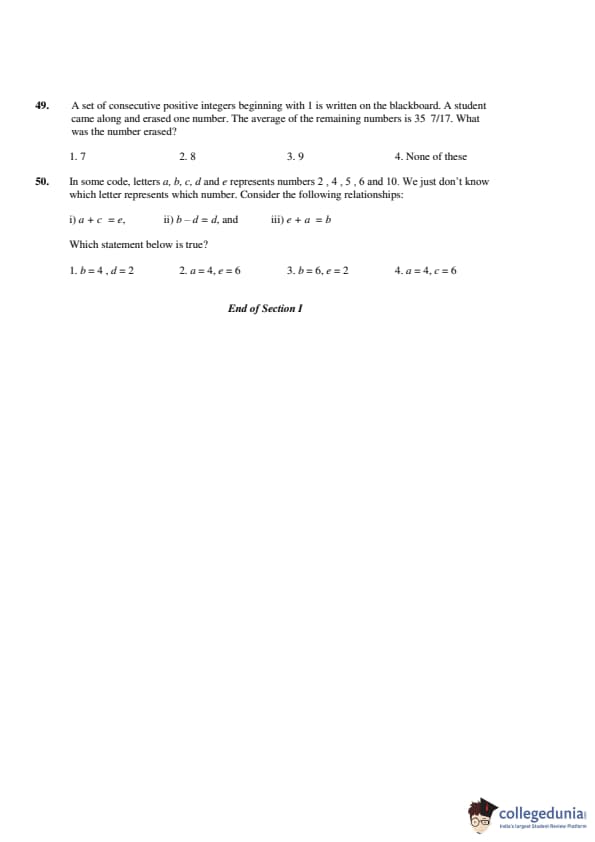 The first section of the question paper was based on Quantitative Ability. There were questions from topics such as Averages, Time & Work, Time & Distance, Progressions and Percentages. Topics such as numbers and geometry/mensuration played a significant role in CAT 2001 question paper.