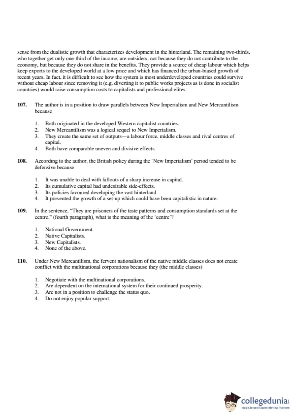 The passage suggests that both New Imperialism and New Mercantilism have comparable uneven and divisive effects, especially in terms of creating unequal power dynamics and social divisions. Therefore, the Correct Answer is: \[ \boxed{(4) \ both have comparable uneven and divisive effects.} \] Quick Tip: Focus on the author's comparison of how both systems affect society and global inequality.