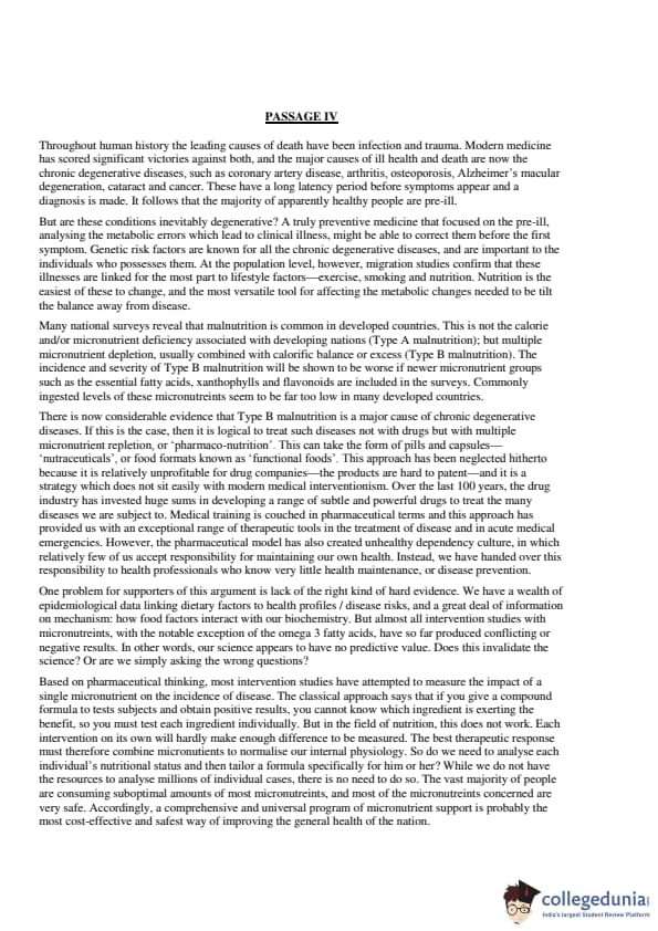 The passage explains that chronic degenerative diseases have a long latency period, meaning that individuals may appear healthy until symptoms eventually develop, making them pre-ill. Therefore, the Correct Answer is: \[ \boxed{(4) \ There is a lengthy latency period associated with chronically degenerative diseases.} \] Quick Tip: Consider the role of latency in the development of diseases when determining pre-illness status.