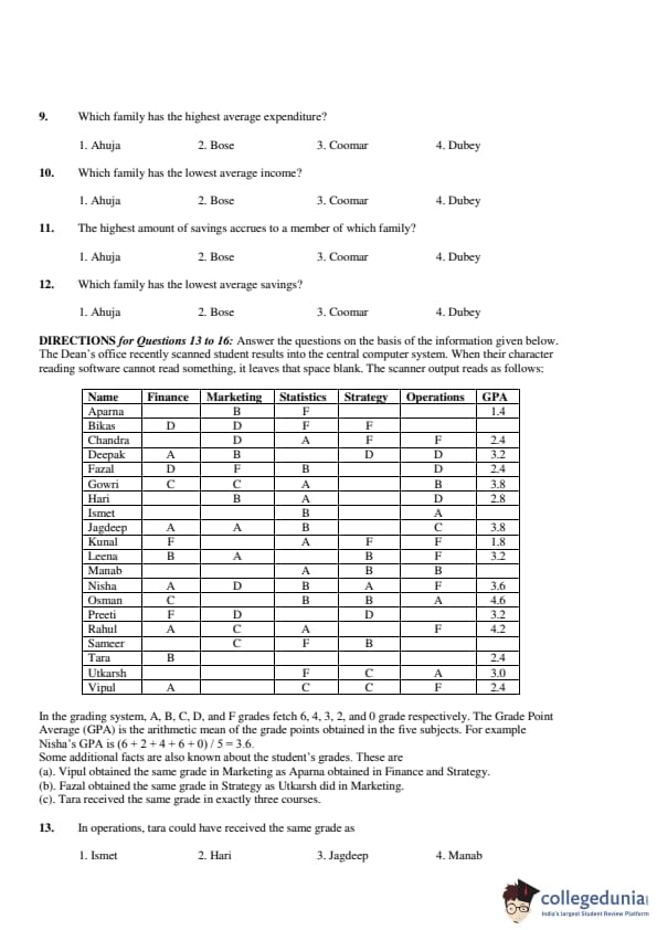 obtained in the five subjects. For example, Nisha’s GPA is (6+2+4+6+0)