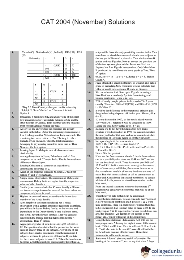 | CAT 2004 Question Paper with Answer Key | Download PDF | Check Solutions |
