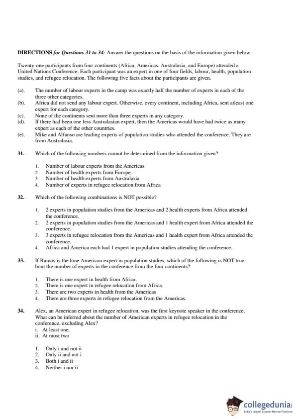 1. The number of labour experts in the camp was exactly half the number of experts ineach of the other three categories.