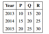 The bar graph shows production (in thousand units) of products P, Q, R over 2013-2015. What is the total production of product P?