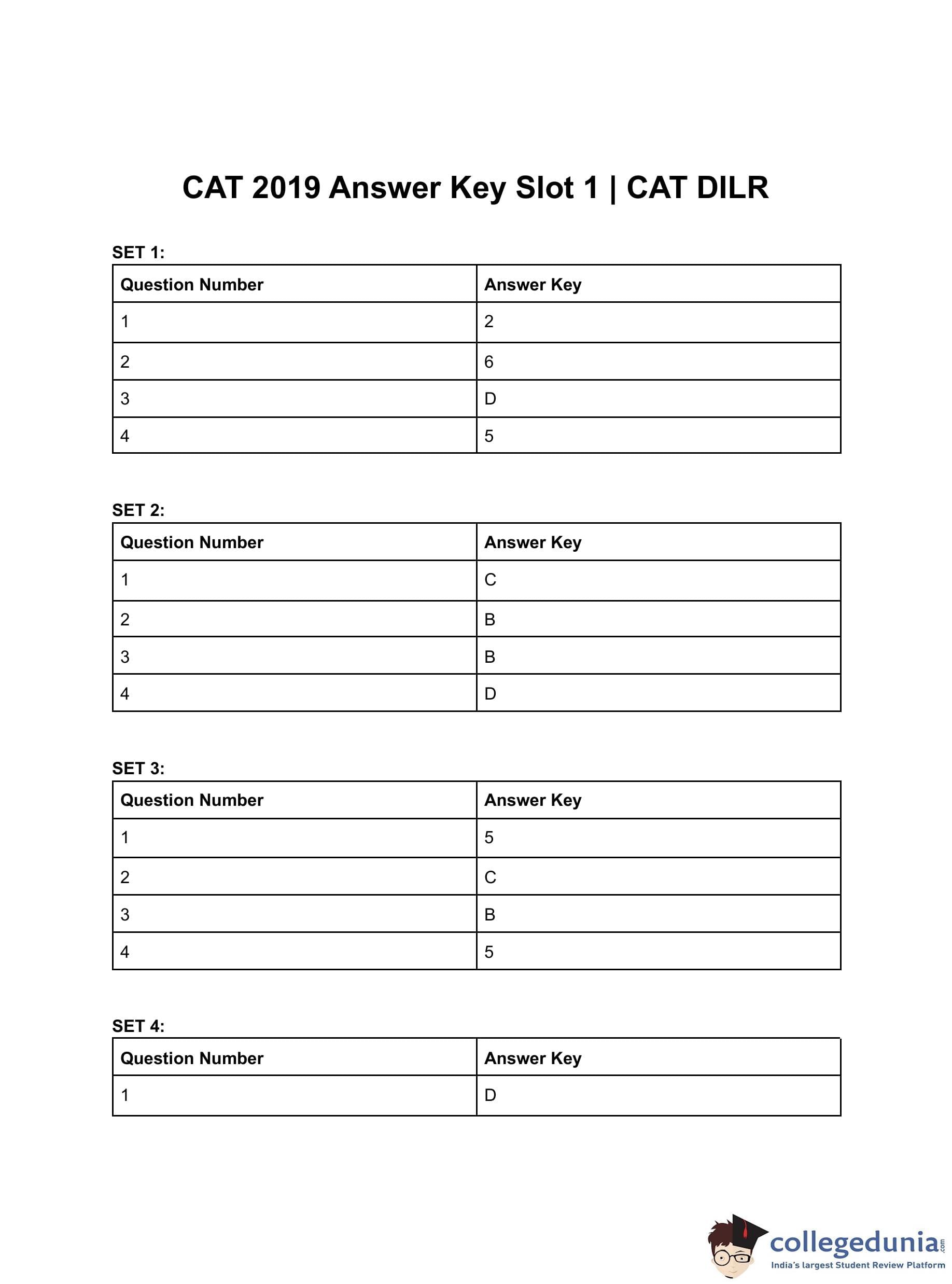 | CAT 2019 DILR Slot 1 Question Paper with Answer Key | Download PDF | Check Solutions |