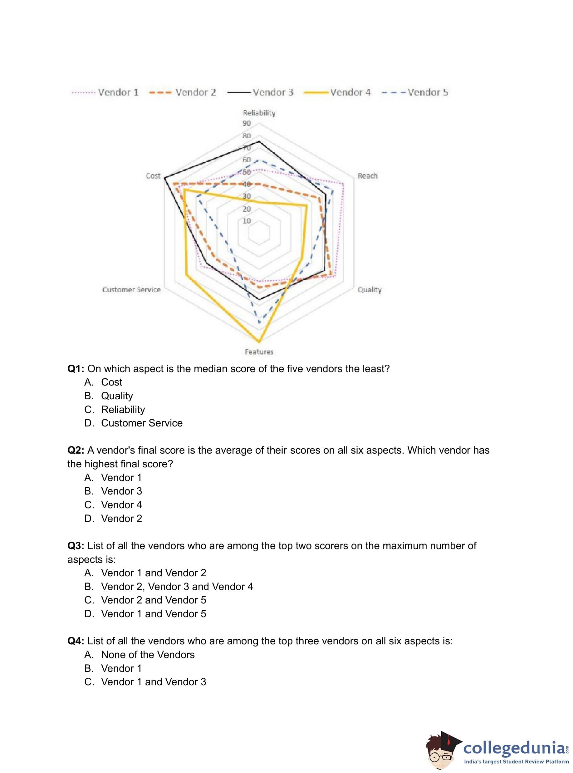 View SolutionA vendor's final score is the average of their scores on all six aspects. Which vendor has the highest final score?