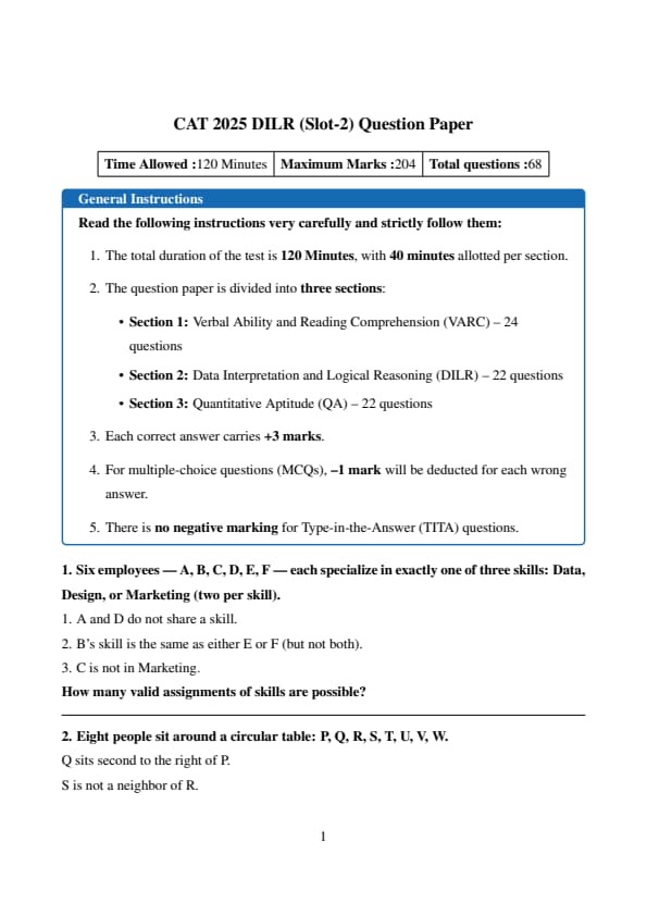 | CAT 2025 Slot 2 DILR Answer Key PDF | |