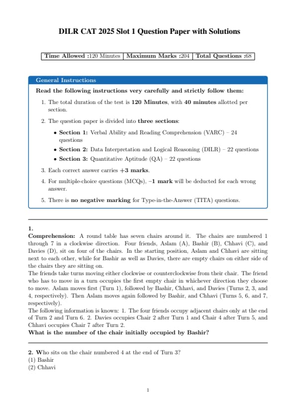 | CAT 2025 Slot 1 DILR Question Paper with Solutions PDF | |