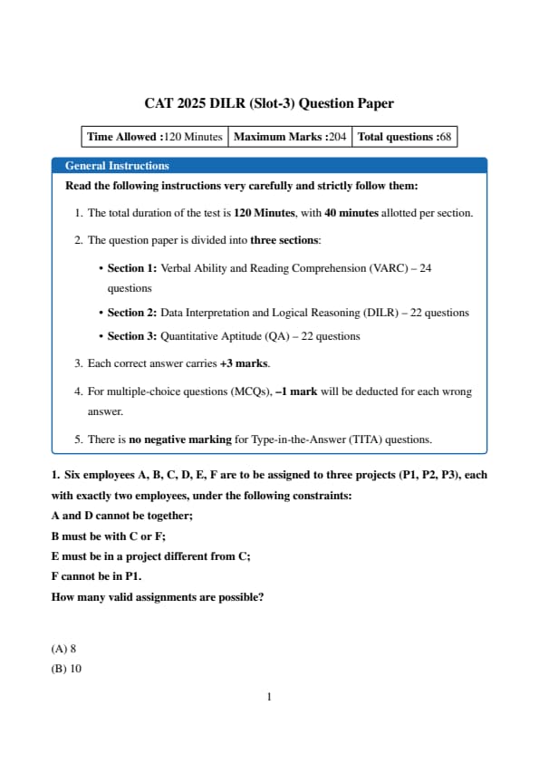 | CAT 2025 Slot 3 DILR Question Paper with Solutions PDF | |