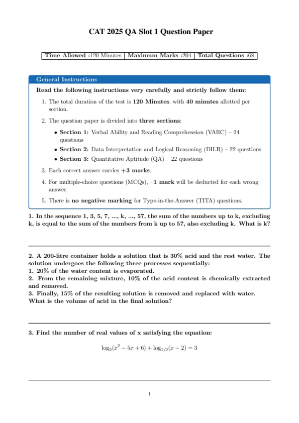 | CAT 2025 Slot 1 QA Question Paper with Solutions PDF | |